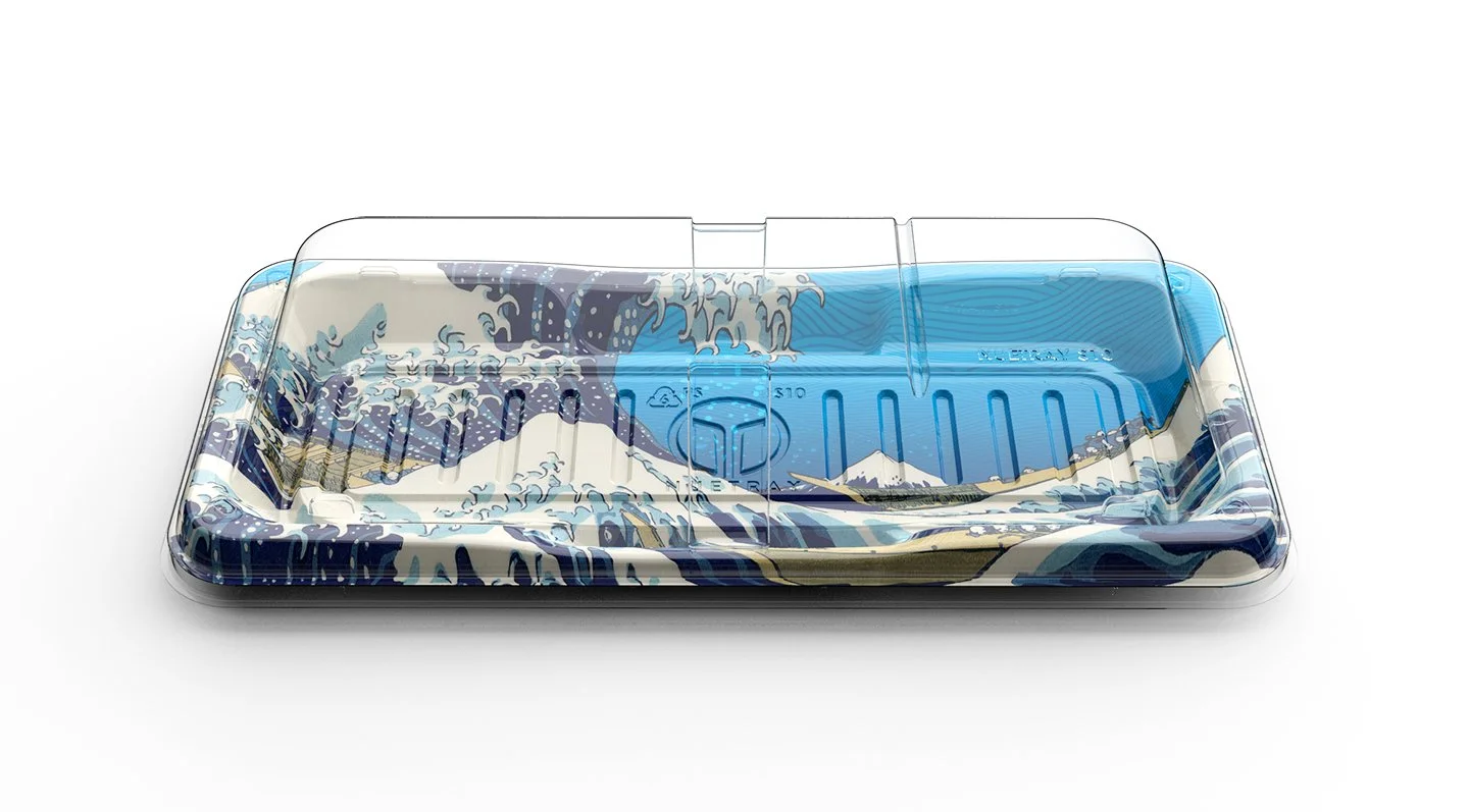 OCEAN: Sushi gets creative. Elevate your presentation with the Great Ocean series, where vibrant blues and the dynamic movement of the wave provide a stunning natural backdrop. This artistic approach ensures your sushi stands out, turning a standard display case into a premium gallery.